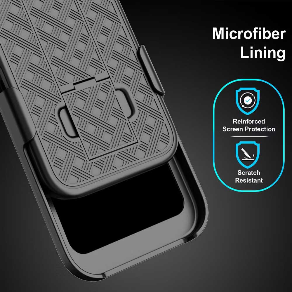 The Durable ClikLock holster includes a sturdy belt attachment to keep your phone in place at all times and the built-In kickstand offers convenient positioning for media viewing.