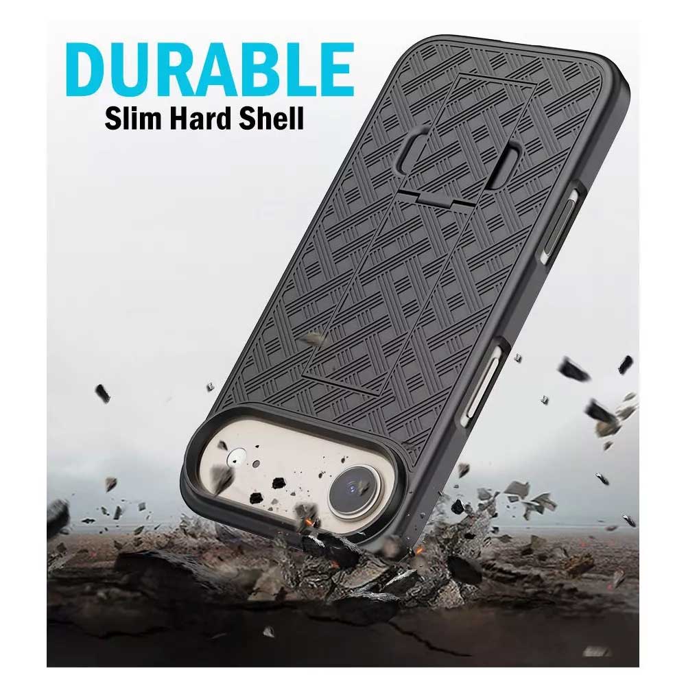 2-in-1 carrying Solution and unique slide-in design for ease of use for iPhone 17 Air (6.5") ONLY. High quality shell holster case with anti slip grip design.