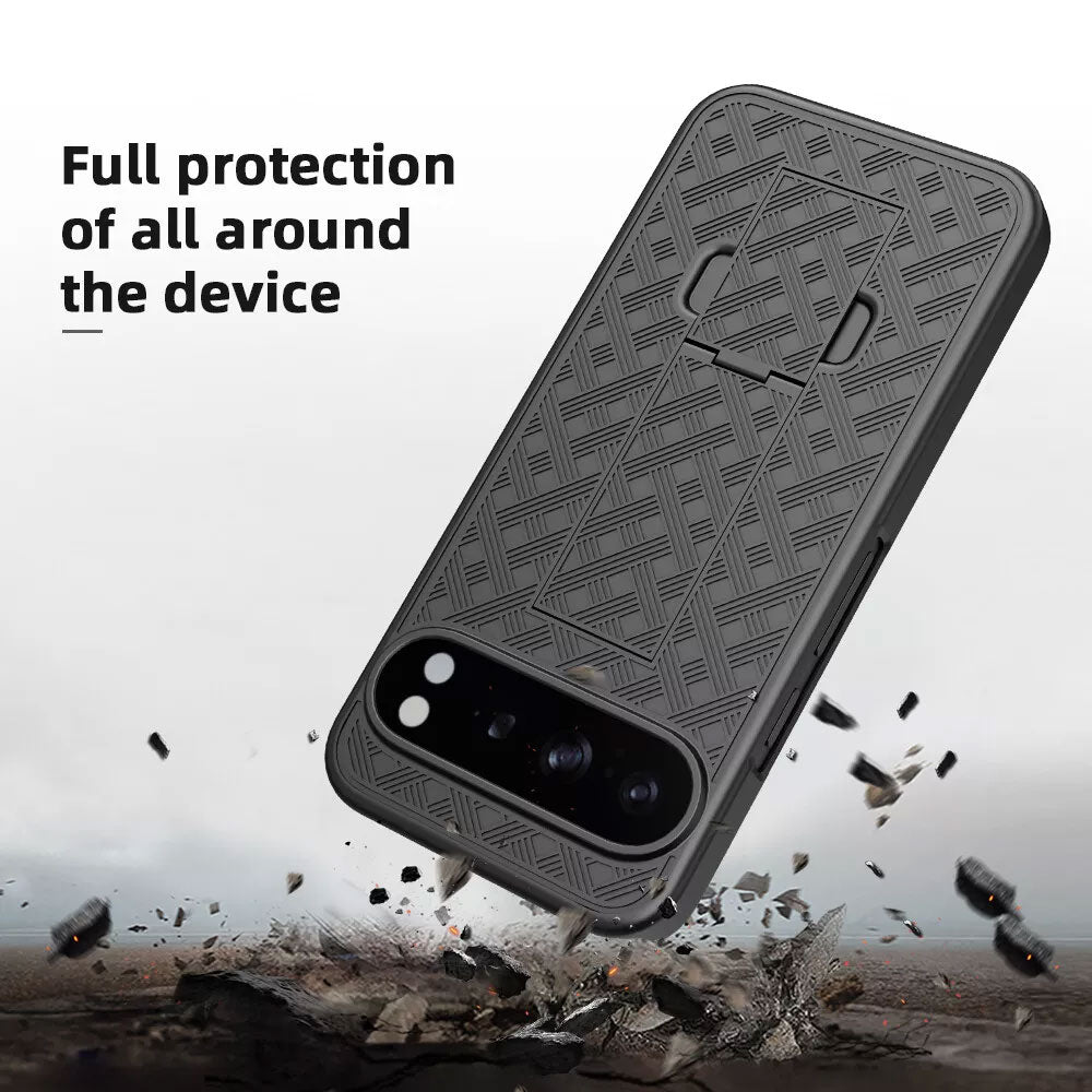 2-in-1 carrying Solution and unique slide-in design for ease of use for Google Pixel 10 Pro XL (6.8") ONLY. High quality shell holster case with anti slip grip design.