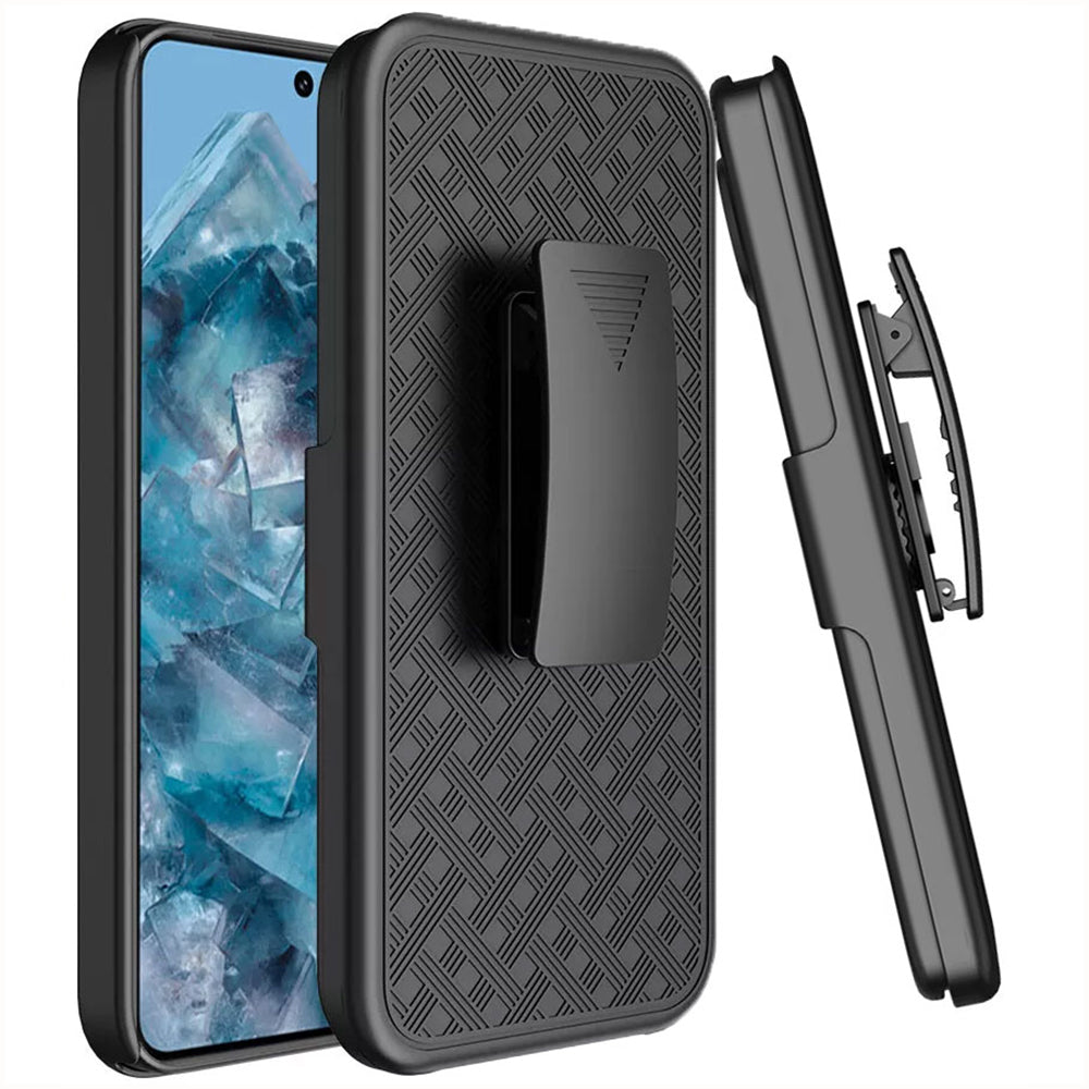 The high-quality build with its smart design allow you to carry your new a Google Pixel 10 Pro XL (6.8") around easily and comfortably. Slim, stylish design features rugged skin tough enough to handle bumps, scratches and shocks.This swivel holster and rear cover is exactly what you need. Rubberized Swivel Holster with Rear Cover Shell included. Allows your phone to be worn on a waistband or belt and can be taken off of the belt clip without removing it. A locking swivel belt clip is easily locked into an extended position and provides different viewing angles while watching movies or video calls, also rotatable 180 degrees. The case can be also be used with holster or as a separate, slim carrying solution. Advanced locking mechanism securely holds phone in place. Precisely cut to preserve full use of volume buttons, charger, camera, microphone, headphone jack, and all other ports.